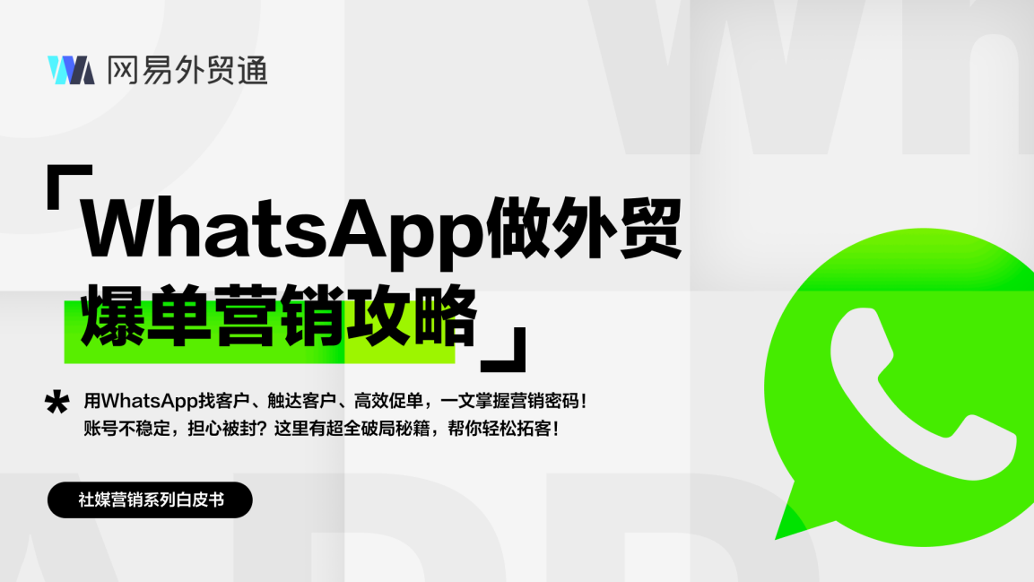 基于以上问题,网易外贸通推出了《WhatsApp爆单营销攻略》,内容包含账号前期的预热准备、WhatsApp获客营销的实操技巧、运营中应该避免的几大误区等内容,为外贸人扫清社媒营销难题,助力收获更多海外订单。