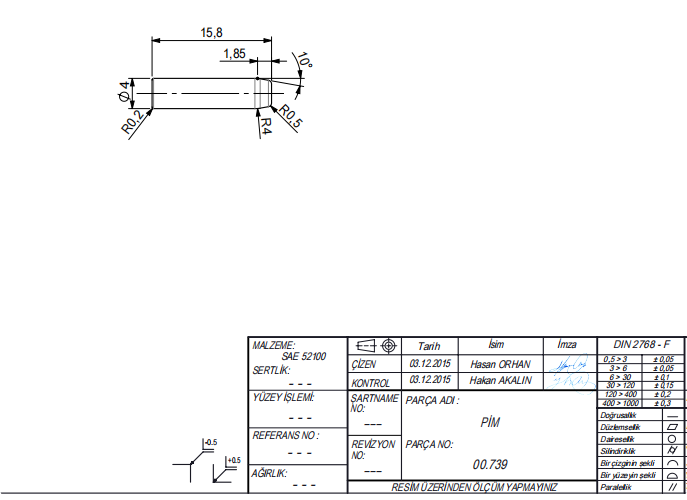 Strength: The steel type shall correspond to quality SAE 1020 or F24.Please include in your quotation a testing plan, detailing the type and number of tests to be carried out by a certified laboratory, in order to verify the established requirements.