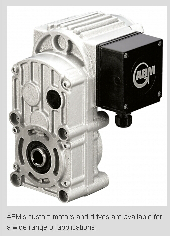 ABM Drives' motors and drives are tailor-made specifically for the application whether it requires compact design, low-noise operation or maximum operating safety. A flexible modular design system allows cost-effective low volume production runs. Custom motors and drives are available for a wide range of application types: forklifts, electric vehicles, lifting technology, biomass heating systems, textile machines, wind power control, warehouse logistics, high-speed doors, air compressors, construction equipment, packaging machinery and vehicle-inspection equipment. The high overall efficiency of ABM Drives' helical and parallel shaft gearboxes reduces power input and energy consumption.