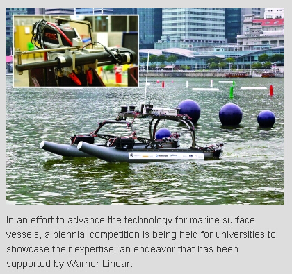 Research and development into unmanned vehicles has made considerable progress in the past few years. Designing fully autonomous vehicles presents additional challenges since they need to share operational space with human-operated vehicles. In an effort to advance the technology for marine surface vessels, a biennial competition is being held for universities to showcase their expertise; an endeavor that has been supported by Warner Linear.
