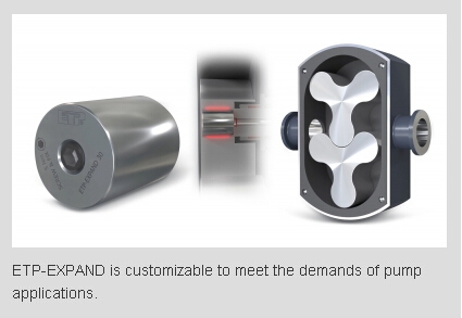 Connecting a rotating piston lobe to a hollow shaft has been improved using the ETP-EXPAND, a patented bushing device that is fast and easy to install and adjust. The ETP-EXPAND was developed to simplify exchanging seals in pumps when fluid viscosity is changed. This is often required in pharmaceutical, chemical, food and beverage processing systems with the seal change needing to be done quickly and easily.