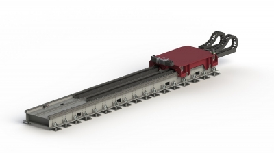 The powerful drive system consists of Güdel gearboxes, Güdel heavy-load guideway systems and Güdel racks and pinions, all made in Güdel’s dedicated Swiss production facilities. The Güdel cam follower on guideway system features replaceable cam follower cartridges designed to facilitate quick change-out. This cam follower system is also very durable in dirty manufacturing environments. The TMF-6 can be configured with up to two robot carriages as standard. Like other Güdel TMF sizes, the TMF-6 can be extended from the shortest length of 3 m to up to 100 m.