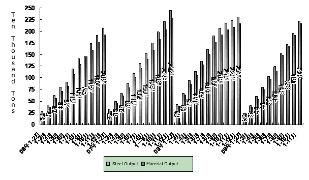 Picture 1:The Change of Bearing Steel Output in China from Jan. to Nov. 2006-2009