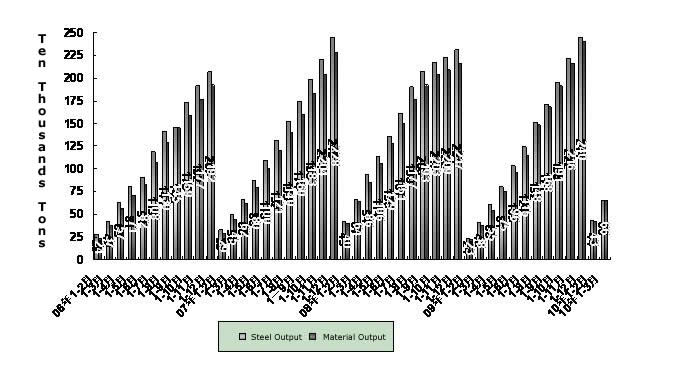 Picture 1:The Change of Bearing Steel Output in China from Jan. to Mar. 2006-2010