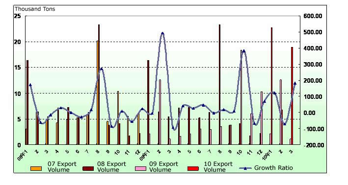 Picture 2: Change of Bearing Steel Export of the Main Special Steel Enterprises in China in March from 2008 to 2010