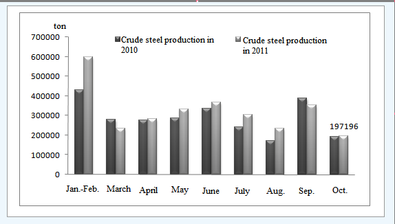 It is learned from Picture 1 that the output of bearing steel significantly decreased in October 2011, while slightly increased compared with last October However, the output for the whole year was quite well with the increment range maintaining above two digits.
