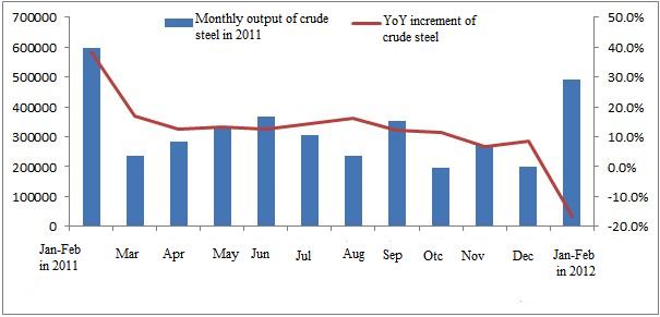 Figure 1: Domestic Production Situation of Bearing Steel (crude steel) from 2011 to 2012