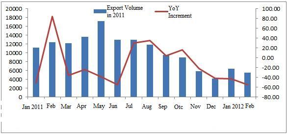 (i) The export volume of bearing steel from January to March in 2012 drastically declined