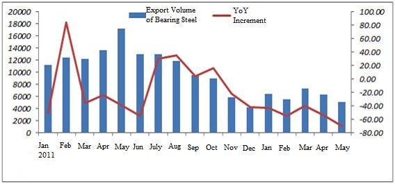 (i) The export volume of bearing steel from January to July in 2012 continued to fall