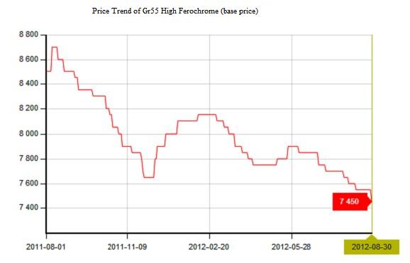 Figure 4: Average Price Trend of Domestic High Carbon Ferrochrome from 2011 to 2012