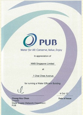 NMB Singapore, a subsidiary of Minebea, Certified as a Friend of Water by Singapore's Public Utilities Board