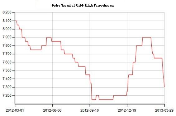 The price of high chromium fell sharply in March, and the quoted price was around 7300 yuan/ton at the end of the month, 400 yuan/ton decreased compared with last month.