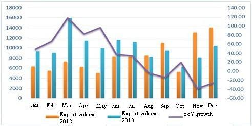(i) The export volume of bearing steel in December 2013 rose QoQ