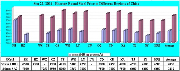Sep 29. 2014 Bearing Round Steel Price in Different Regions of China