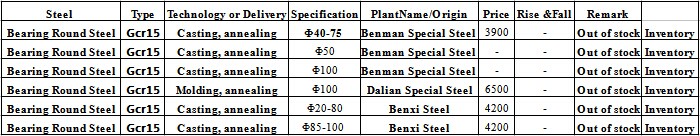 Next Aug 17 Bearing Steel Price in Different Regions of China
