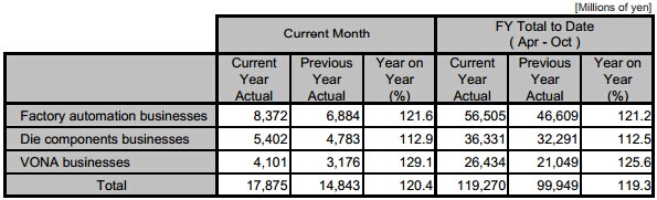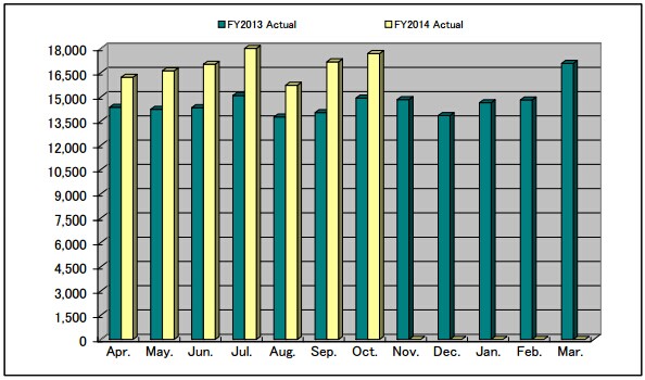Misumi announced Monthly Sales Figures Oct 2014 (Consolidated)