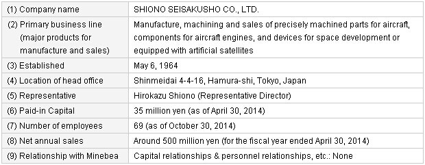 Newco strives to continue and expand the business with existing customers of SHIONO SEISAKUSHO, while trying to boost the sales of Minebea Group's aircraft components business going forward as a Minebea Group company. SHIONO SEISAKUSHO will commence special liquidation proceedings following the business transfer.