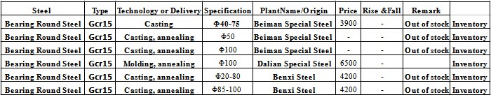 Next Aug 17 Bearing Steel Price in Different Regions of China