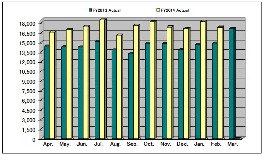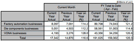 Misumi announced Monthly Sales Figures Feb 2015 (Consolidated)