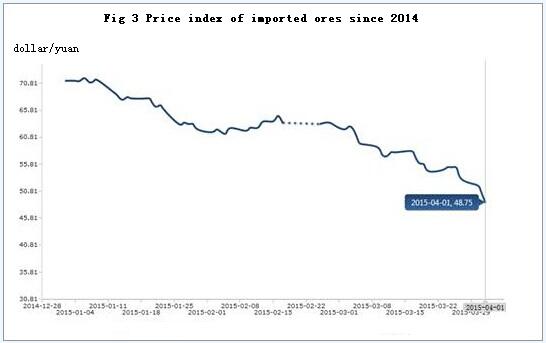 Import ore index continued to decline in March, currently arriving at $48.75; The price of carbon steel scrap continued to fall, and the monthly average price fell by 3.81% over the previous month; the price of high carbon ferrochrome hit the bottom in consolidation state, around 6593 yuan/ton. It is predicted that raw material prices will fall in limited space in April.