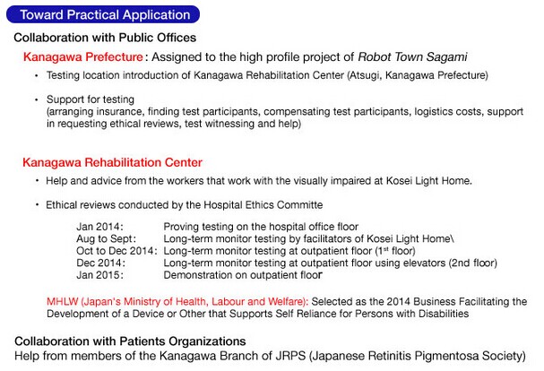 Projects for Developing Assistive Products in Ministry of Health Labour and Welfare of Japan: Selected as the 2014 Business Facilitating the Development of a Device or Other Mechanism That Supports Self-Reliance for Persons with Disabilities.