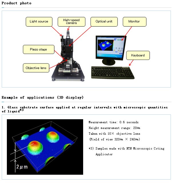 NTN exhibits the developed product at the “BIOtech Japan 2015” to be held at Tokyo Big Sight from May 13 to 15. The product will be proposed to equipment manufacturers seeking to introduce NTN's microfabrication technology, and as an instrument that meets the needs of customers considering microscopic measuring instruments, and a series lineup will also be developed to further expand sales.