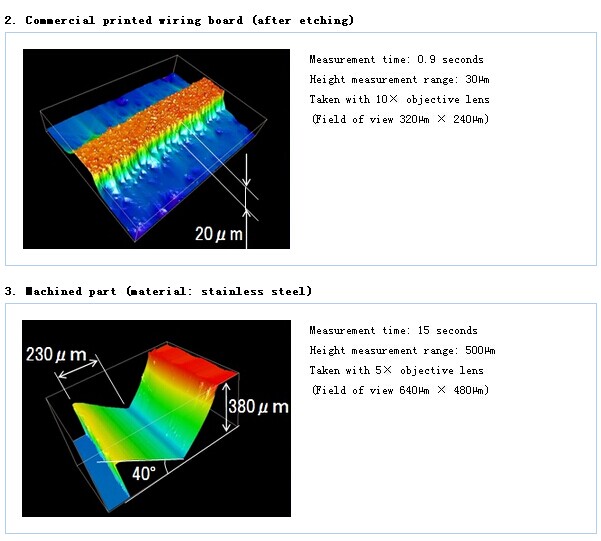 In the microfabrication industry, control of surface characteristics and the finished dimensions of etching, precision machining and chemical liquid coating is essential, and efforts are being made to maintain product quality with inspections of external appearance during machining process and the finished product. Microfabrication technology requires an even greater level of quality and quicker inspection times than before due to miniaturization of circuit patterns in electronic parts and advances made in the medical field where a high level of reliability is required. Conventional 3D measuring instruments that are already available on the market require a long measuring time for verification purposes on manufacturing lines, resulting in issues related to practicality.
