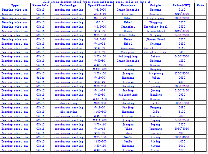 2015 China Bearing Steel Price from different steel mills on June 18