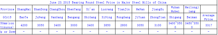 June 23. 2015 Bearing Round Steel Price in Major Steel Mills of China
