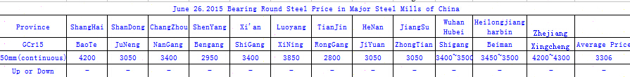June 26. 2015 Bearing Round Steel Price in Major Steel Mills of China