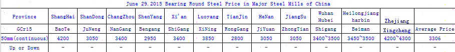 June 29. 2015 Bearing Round Steel Price in Major Steel Mills of China
