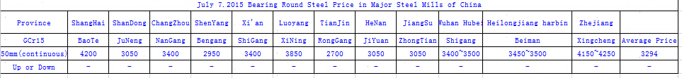 July 7. 2015 Bearing Round Steel Price in Major Steel Mills of China