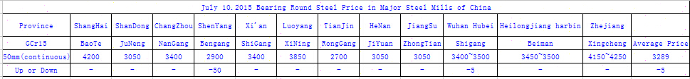July 10. 2015 Bearing Round Steel Price in Major Steel Mills of China