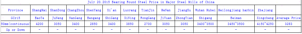 July 20. 2015 Bearing Round Steel Price in Major Steel Mills of China