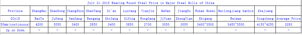 July 21. 2015 Bearing Round Steel Price in Major Steel Mills of China