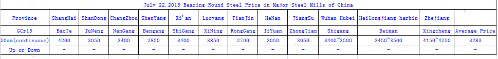 July 22. 2015 Bearing Round Steel Price in Major Steel Mills of China
