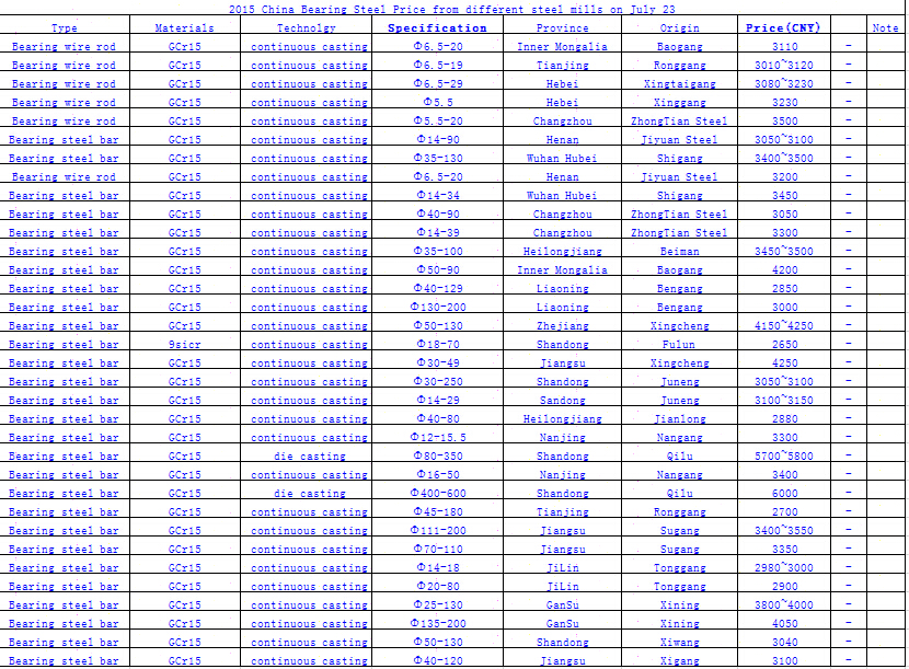 Next Aug 17 Bearing Steel Price in Different Regions of China