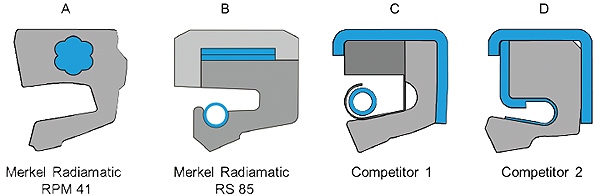 Pretensioning elements are traditionally used at the seal lip of radial shaft sealing rings. They are either round springs integrated into slots, formed leaf springs or combinations of the two. The main reason for spring pretensioning is that current materials fatigue too quickly to produce their own stressing force over a long time period. Due to wear on the seal edge, it must also be continuously repositioned. The seal edge needs sufficient contact and pressure on the counter face to achieve the required sealing effect even with slight shaft eccentricity. In addition, this has to occur over the equipment’s entire operating life.