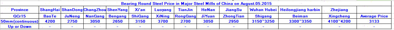 August.05.2015 Bearing Round Steel Price in Major Steel Mills of China