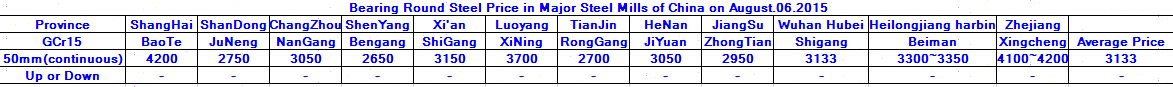 August.06.2015 Bearing Round Steel Price in Major Steel Mills of China