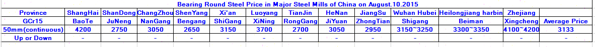 August.10.2015 Bearing Round Steel Price in Major Steel Mills of China