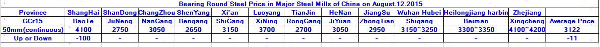 August.12.2015 Bearing Round Steel Price in Major Steel Mills of China