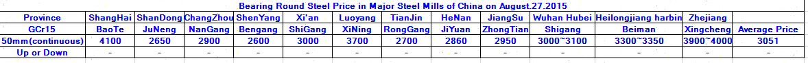 August.27.2015 Bearing Round Steel Price in Major Steel Mills of China