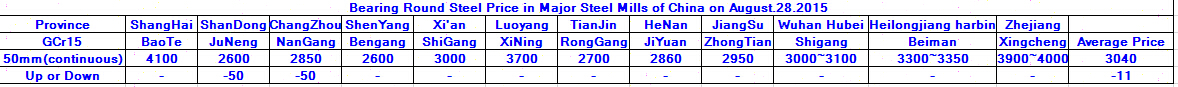 August.28.2015 Bearing Round Steel Price in Major Steel Mills of China
