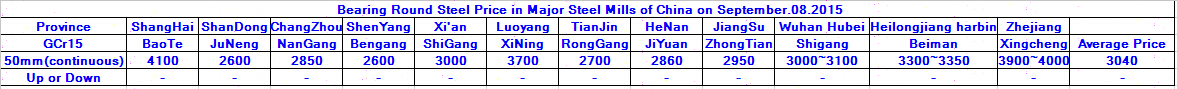 September.08.2015 Bearing Round Steel Price in Major Steel Mills of China
