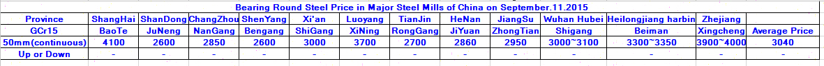 September.11.2015 Bearing Round Steel Price in Major Steel Mills of China
