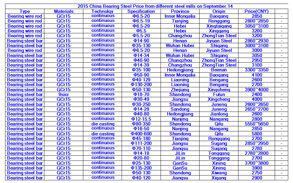 Next Aug 17 Bearing Steel Price in Different Regions of China
