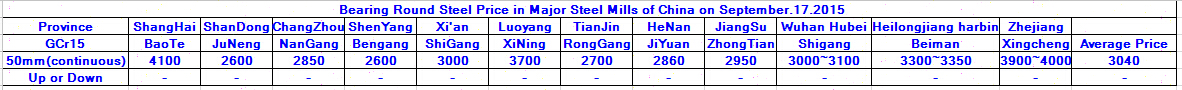 September.17.2015 Bearing Round Steel Price in Major Steel Mills of China