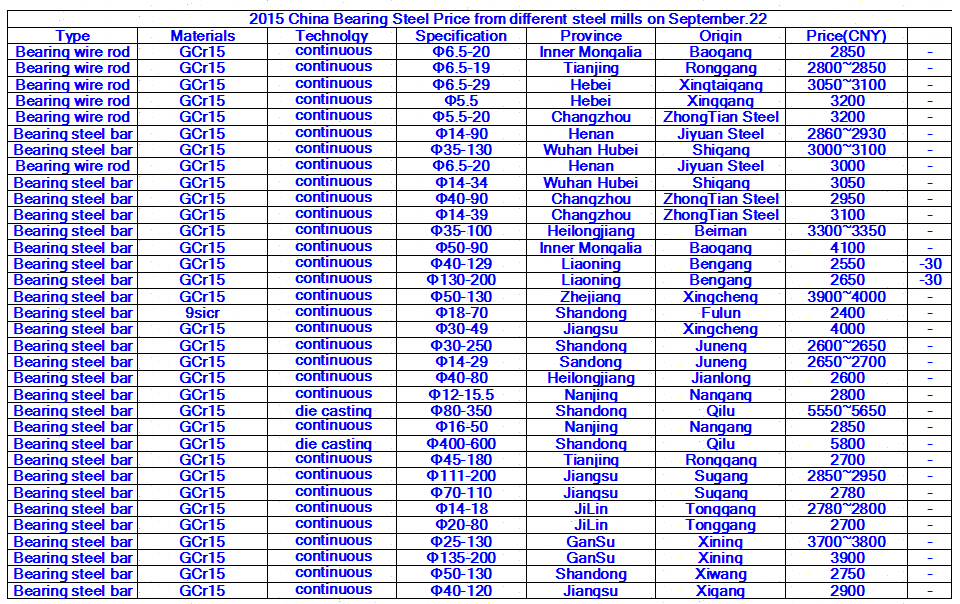 Next Aug 17 Bearing Steel Price in Different Regions of China