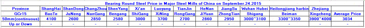 September.24.2015 Bearing Round Steel Price in Major Steel Mills of China